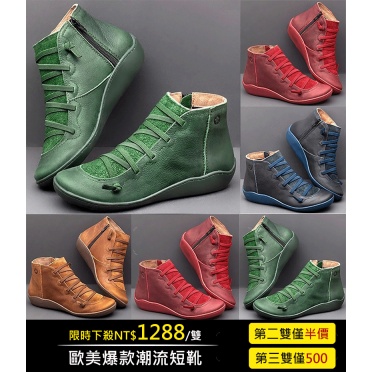 • 【買一送一】歐美爆款!潮流短靴!休閒柔軟【真牛皮】踝靴 時尚風格,適合各種場合, 鞋櫃中有一雙必備鞋,緩解腳跟疼痛【貨到付款、免費!】