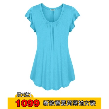 • 【海外爆款,破盤大促】夏季新款女士U字領荷葉袖上衣T衫,精選柔軟材質,100%清透涼爽舒適,修飾腰身線條顯瘦,【買一送一,買三送四,一件僅需$271】多色任選明亮涼快整個夏天