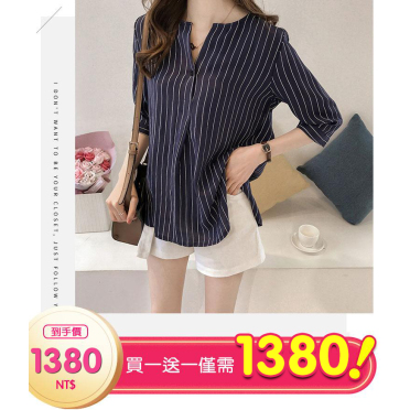 【買一送一】時尚穿搭達人必備 韓版條紋休閒襯衫 遮肉顯瘦不在話下